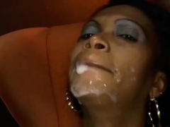 Short Hair Ebony Babe Gets Massive Cum Shower