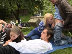 This blond girl gets her sweatshirt for litlle fuck in natur